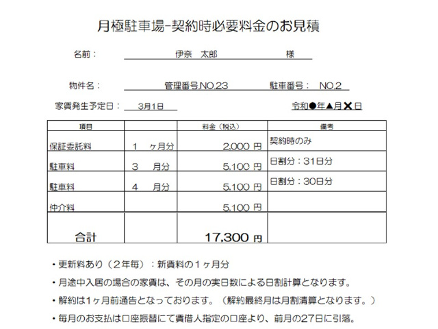 新賃料1ヶ月分 |